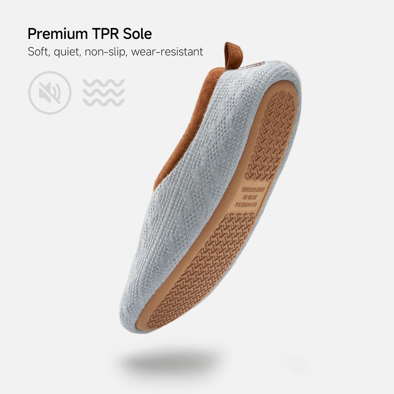 - Breathable knitted fabric, keep dry and comfortable, suitable for all seasons. TPR sole, soft and silent, non-slip and wear-resistant, walk as silently as a cat, and also allow you to pick up the mail outside the house.