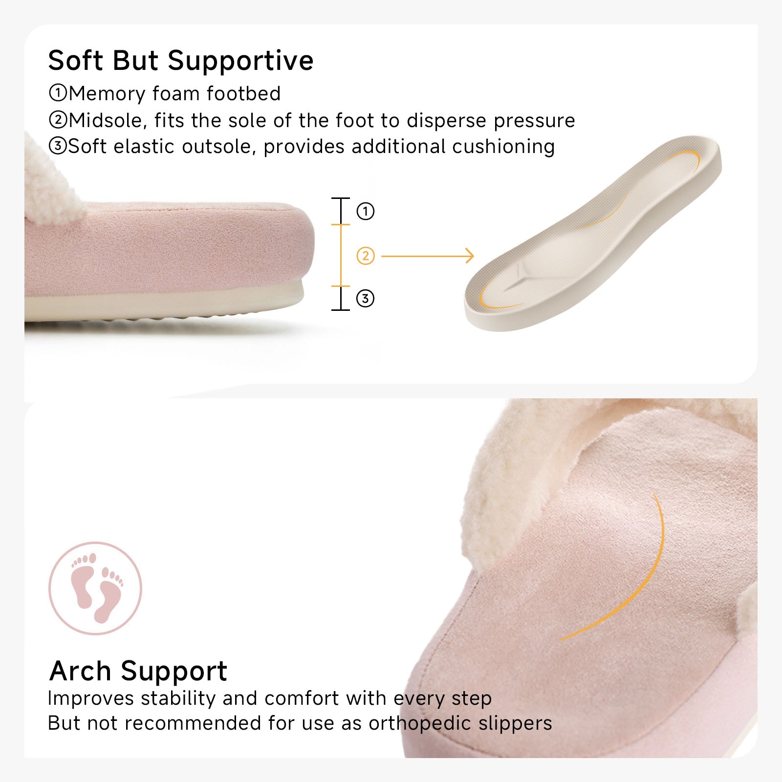 Inside, a high-density memory foam insole cradles every step with a steady, adaptive cushion that eases pressure and softens the impact of daily wear. The supportive midsole adds just the right amount of structure without ever feeling heavy or rigid, while the lightweight EVA outsole brings quiet flexibility to every movement—whether you're gliding across hardwood, lingering over morning coffee, or sinking into an evening unwind.