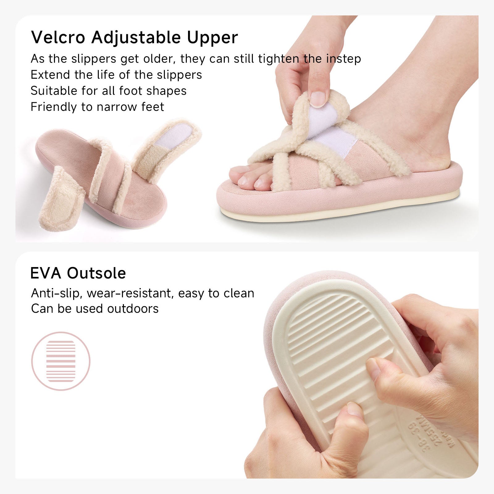Sole Material: Lightweight, flexible EVA with durable non-slip tread