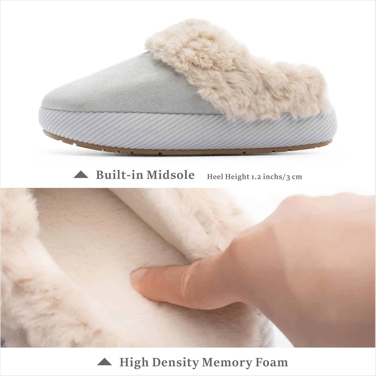Plush Faux Suede & Fur Lining Soft faux suede wraps the foot in gentle warmth, while the dense faux fur lining supports each step. Designed for extended wear, it keeps feet snug and dry, making every moment at home comfortable and easy.